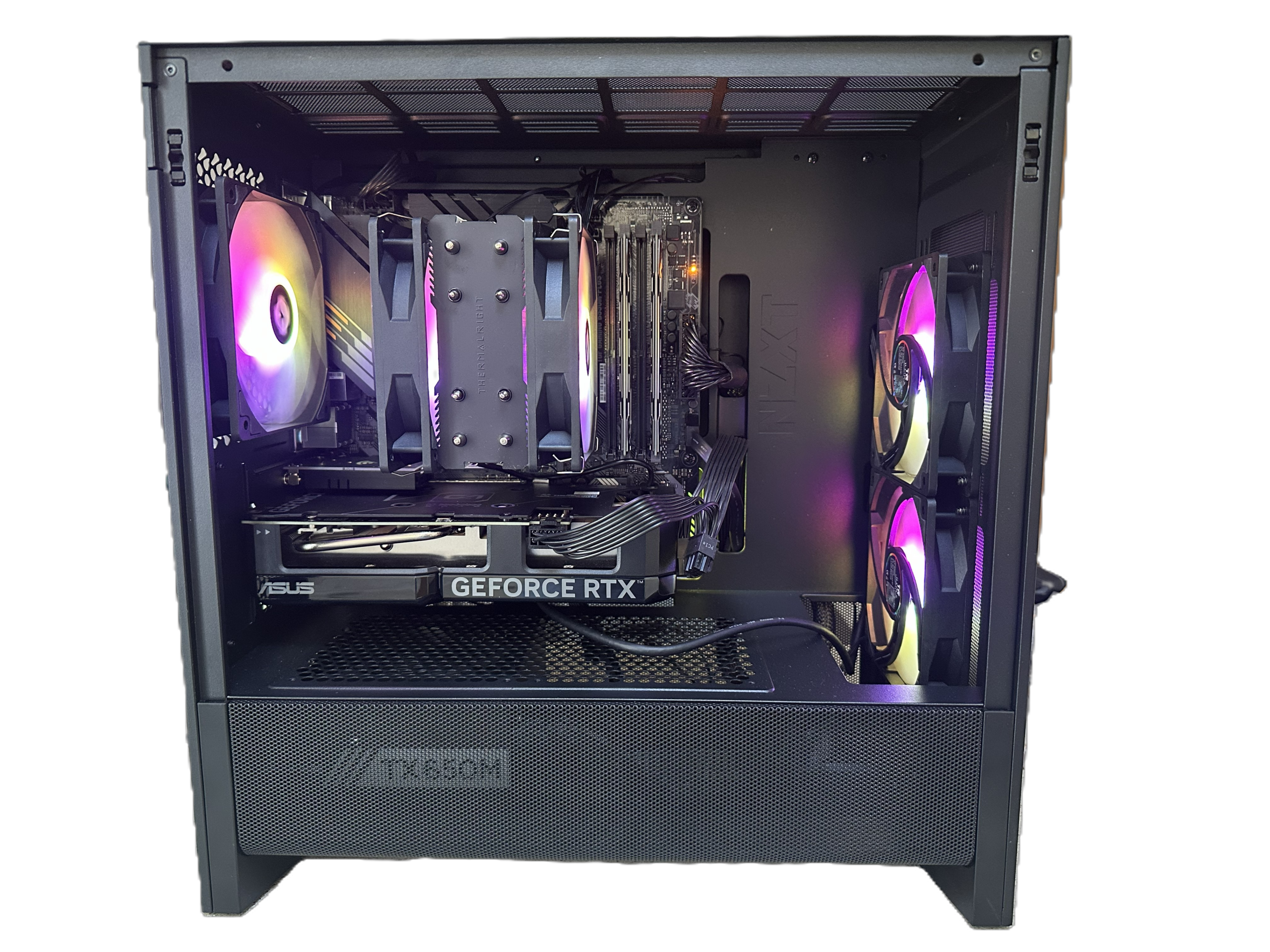 Airflow is at the core of every RGGN build, and the NZXT H3 Flow sets the foundation. Its high‑airflow mesh design feeds a constant stream of cool air to the components, supported by 5× high‑quality ARGB PWM fans that keep temperatures controlled and noise levels low. Paired with the Peerless Assassin dual‑tower cooler, the system stays cool, quiet and composed even during long gaming sessions. This airflow‑first approach doesn’t just improve performance — it extends component lifespan and keeps the system feeling smooth under pressure.